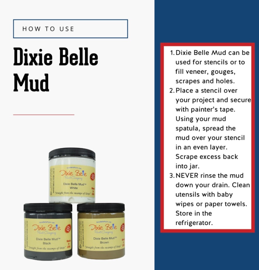 Dixie Belle Mud can be used for repairs, embellishment, and special effects.
