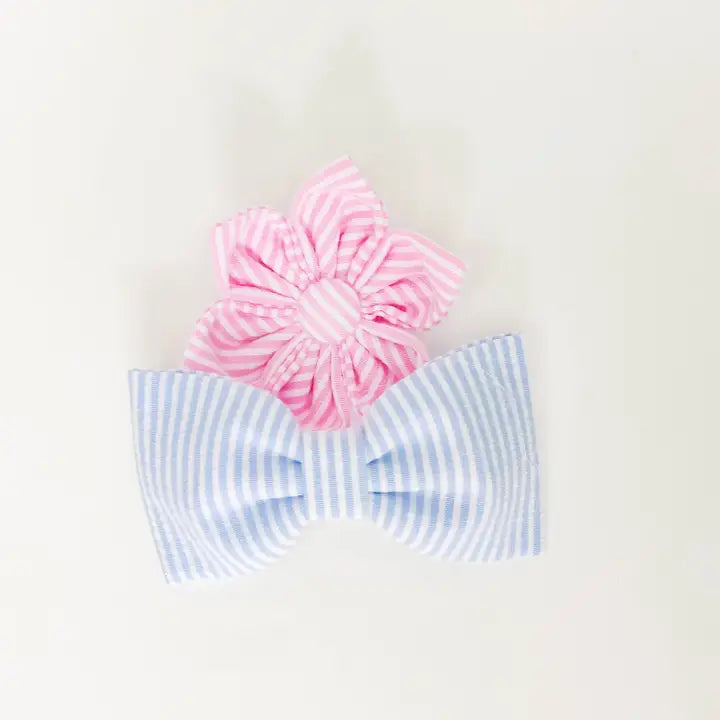 • Load image into Gallery viewer, Blue Seersucker Dog Bow Tie