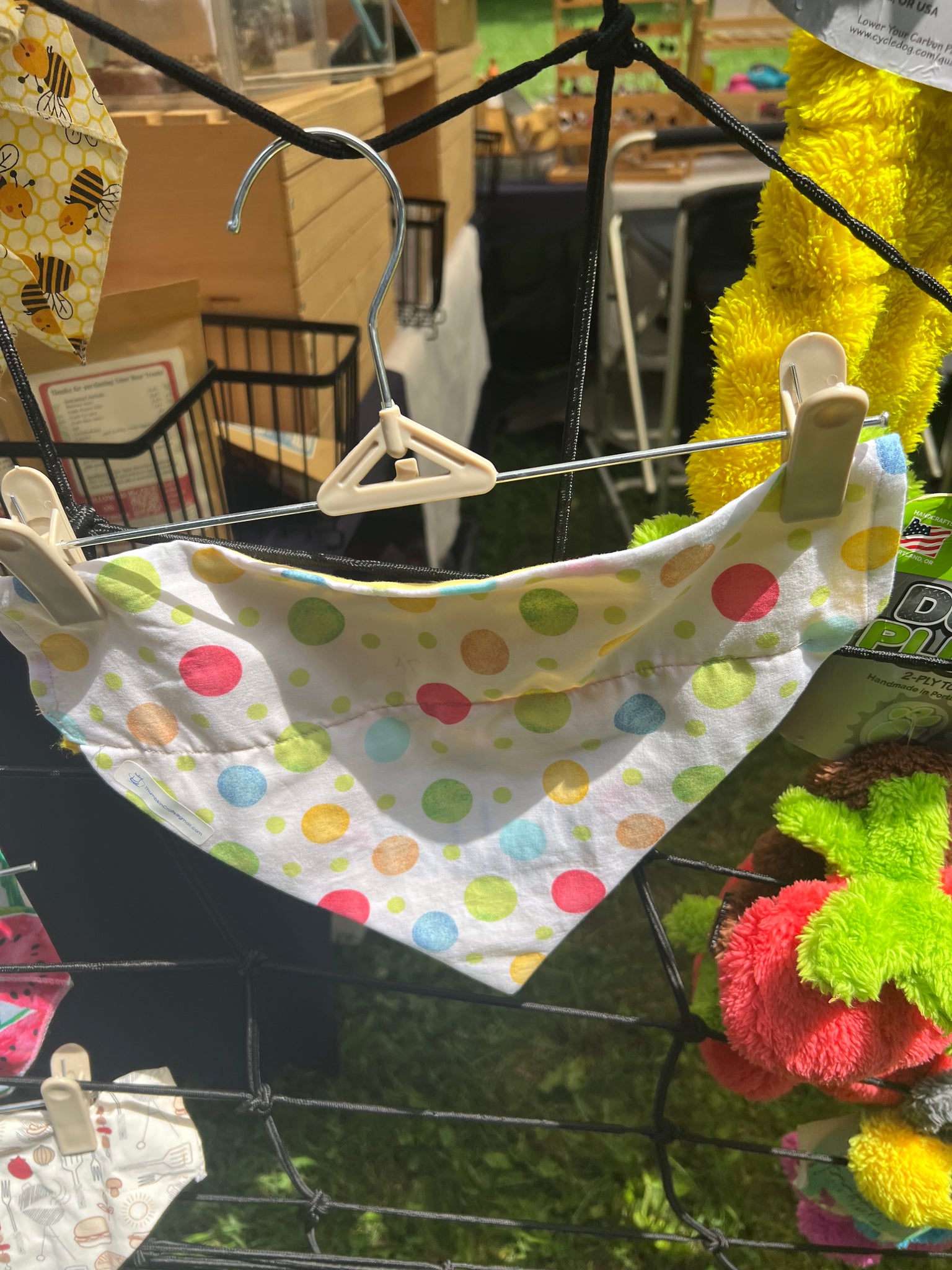 Hand made right here in Nj. Please email prior to ordering for available colors and patterns. No 2 are the same and made especially for Tater Bear Yreats. Slip over the collar for easy wear.