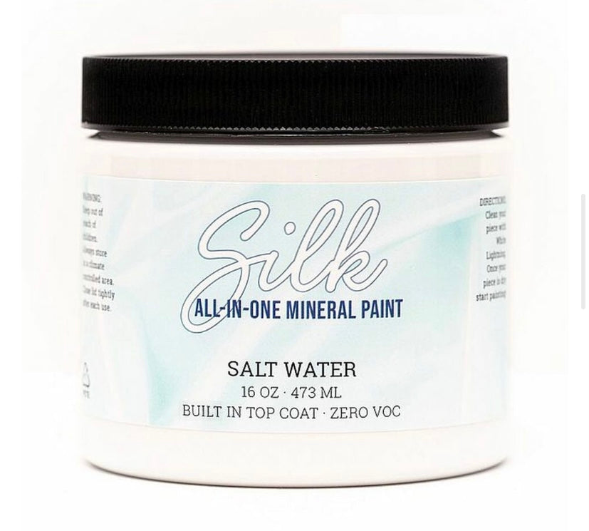 Try an inviting white tone in your home with Silk All-In-One Mineral Paint in the color Salt Water. Salt Water is a fabulous off white for all of your home decor and renovation projects! No prep is required just clean your piece and paint!