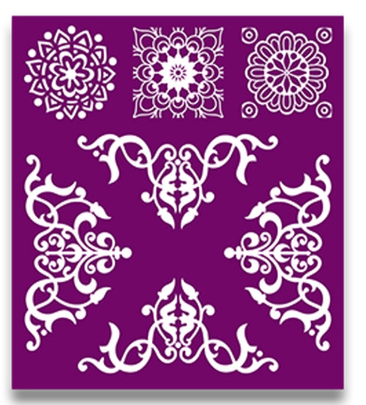 Liven up your pieces with this unique and intricate Silkscreen Stencil! With 3 designs included in this set, cast an antique look or a fresh style. The result are endless when it comes to this fun and fabulous stencil.